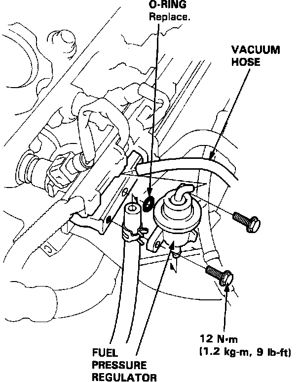 2. Disconnect the vacuum hose and fuel return hose from the pressure regulator.