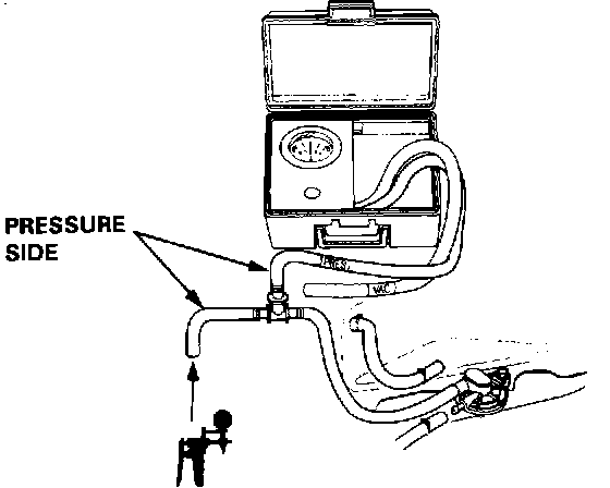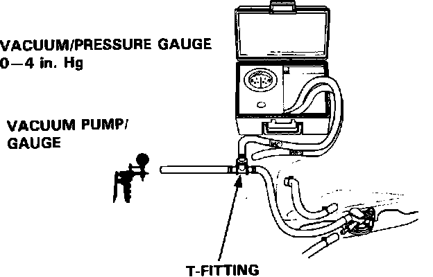 1. Remove the Fuel Tank Filler Cap.2. Remove vapor line from the Fuel Tank and connect a vacuum/pressure gauge and pump via a T-fitting.