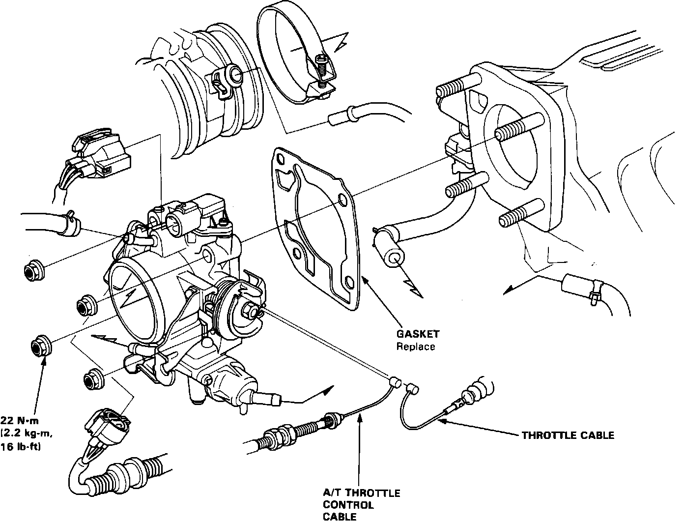 7. Torque 8mm throttle body nuts to 22 Nm (16 ft lb).