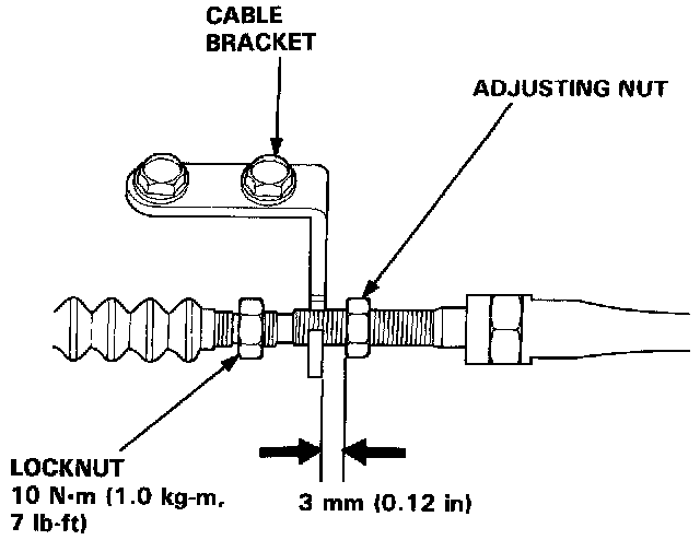 4. Turn the adjusting nut until it is 3 mm (0.12 in.) away from the cable bracket.