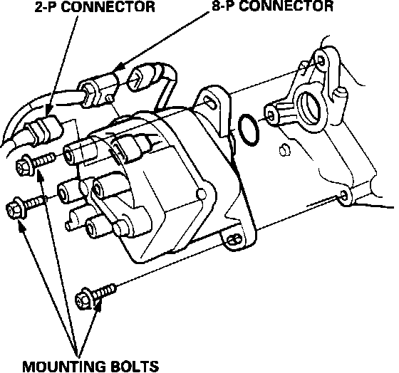 1. Disconnect the 2-P and 8-P connectors from the distributor.