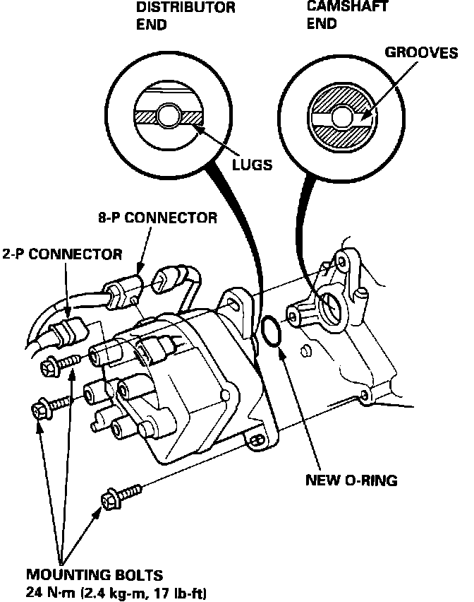 15. Connect the 2-P and 8-P connectors to the distributor.
