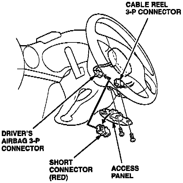 10. Remove and store the short connector. Reconnect the driver's airbag 3-P connector, and reinstall the access panel.