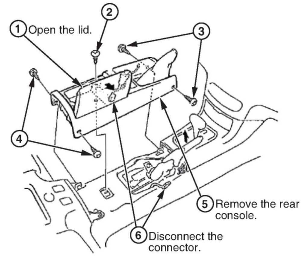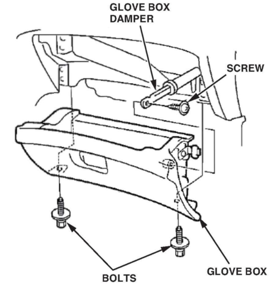 ^ Remove the bolts, then pull up the knee bolster and remove it.