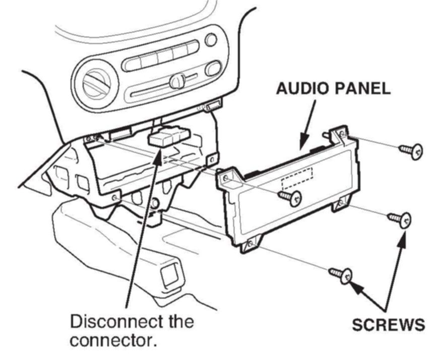 Carefully remove the screws, disconnect the connector, then remove the audio panel.