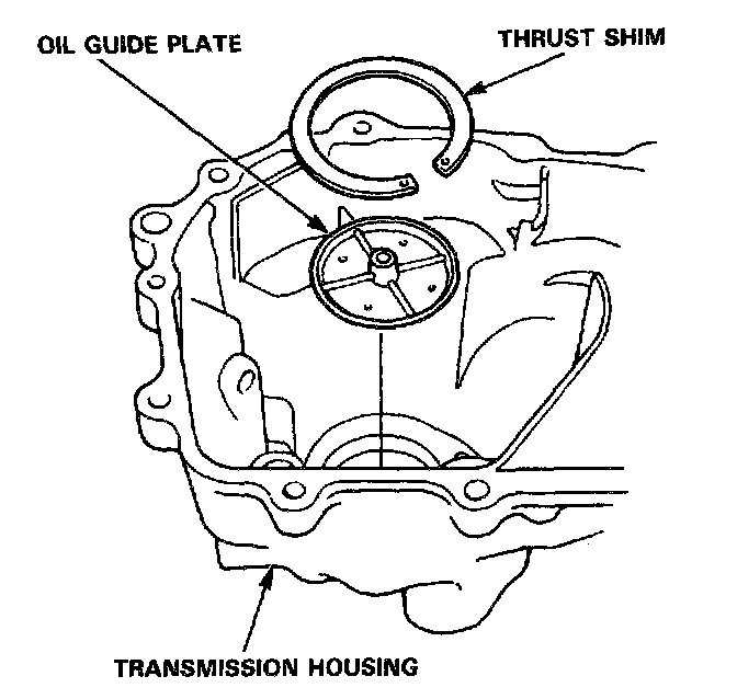 7. Remove the thrust shim and oil guide plate from the transmission housing.