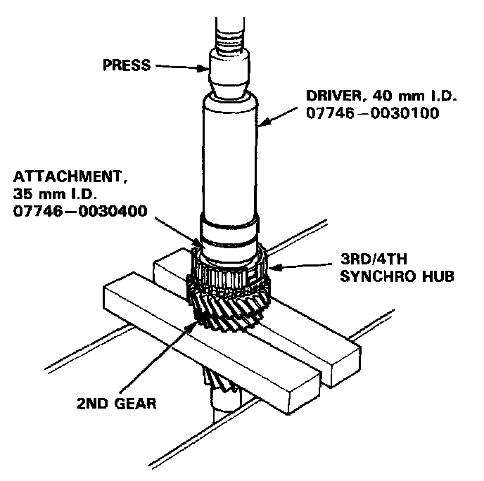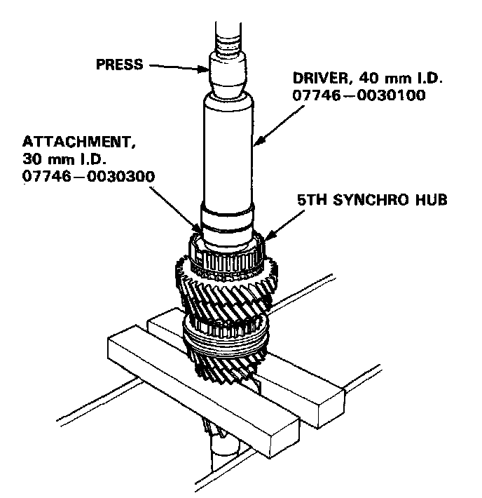REASSEMBLYCAUTION: When installing the 3rd/4th and 5th synchro hubs. support the shaft on steel blocks. and install the synchro hubs using a press.