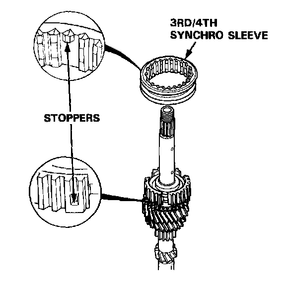 2. Install the 3rd/4th synchro sleeve by aligning the stoppers of the 3rd/4th synchro sleeve and hub.