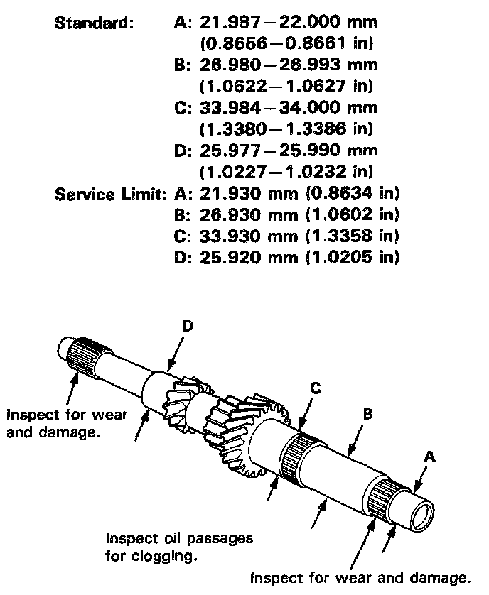 If any part of the mainshaft is less than the service limit, replace it with a new one.