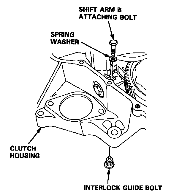 DISASSEMBLY1. Remove the interlock guide bolt from under the clutch housing.