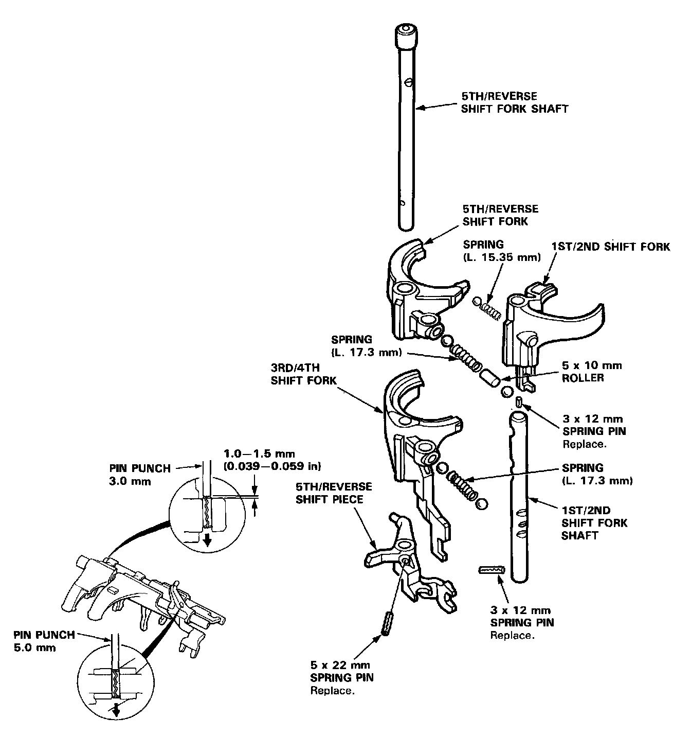 - When assembling, install the shift fork shaft with its detents facing the hole where the balls are inserted.