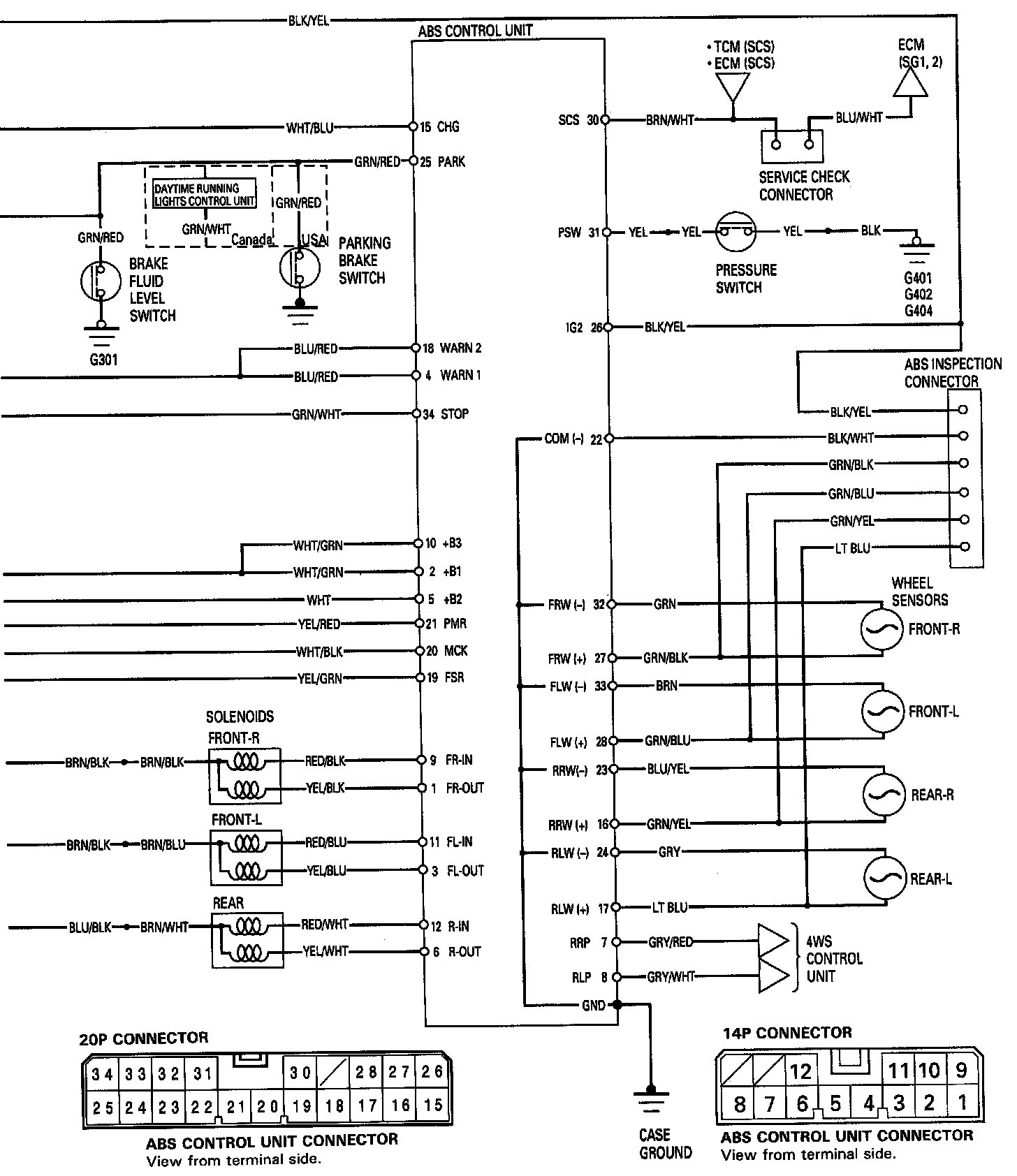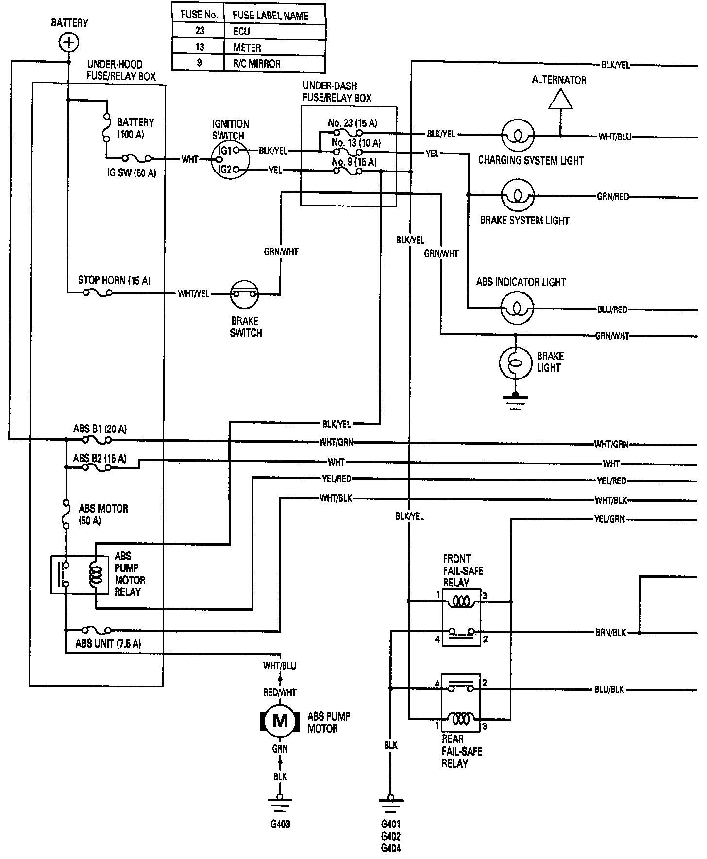 Refer to wiring circuits Fig. 13 when diagnosing the anti-lock brake system.