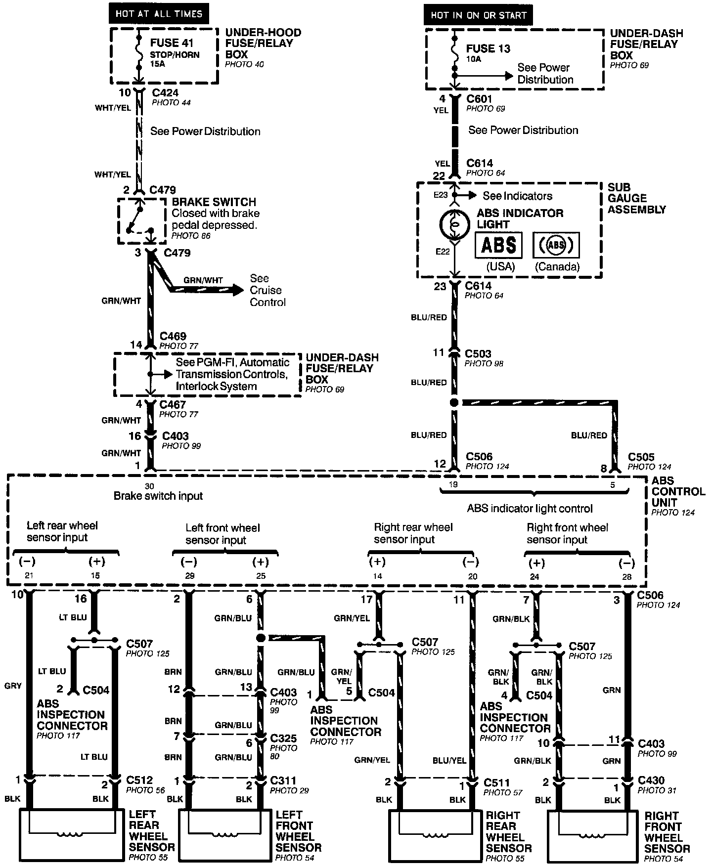 Anti-Lock Brake System- Brake Switch, Indicator, And Wheel Speed Sensor Inputs: