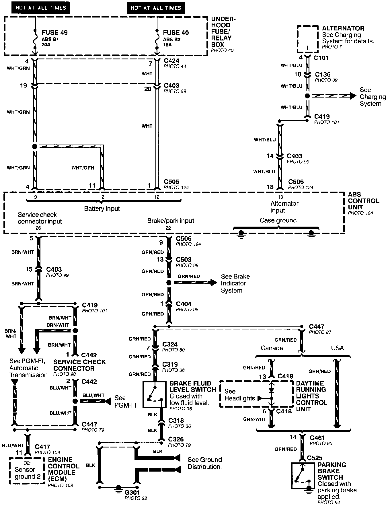 Anti-Lock Brake System- Power, Brake Fluid Switch, And Parking Brake Switch Inputs:
