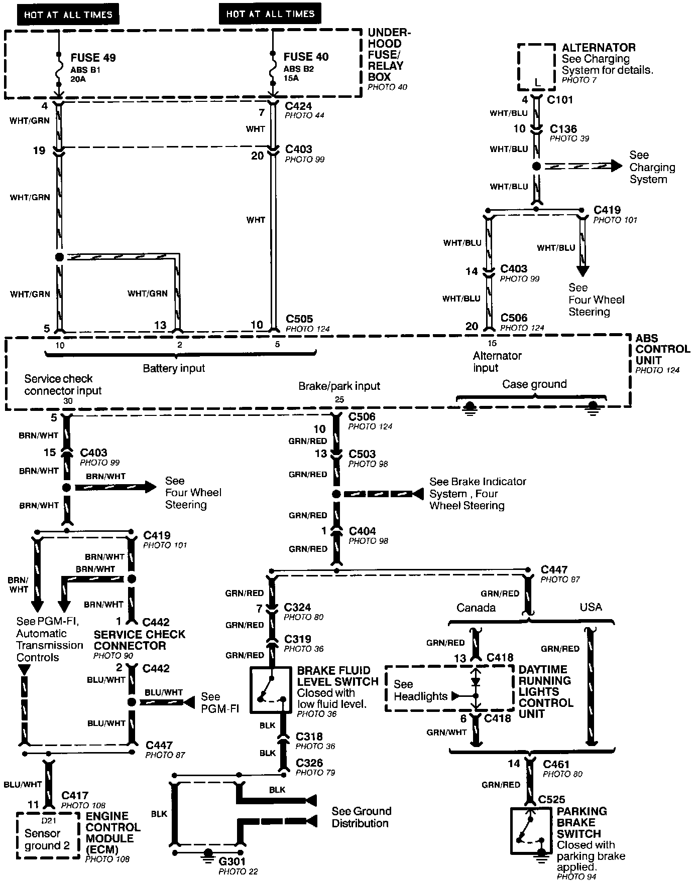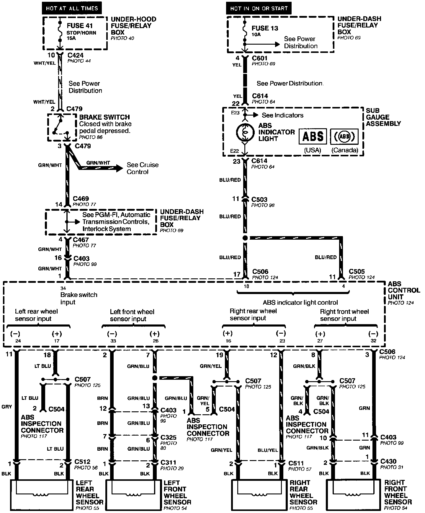 Anti-Lock Brake System- Power, Brake Fluid Switch,and Parking Brake Switch Inputs: