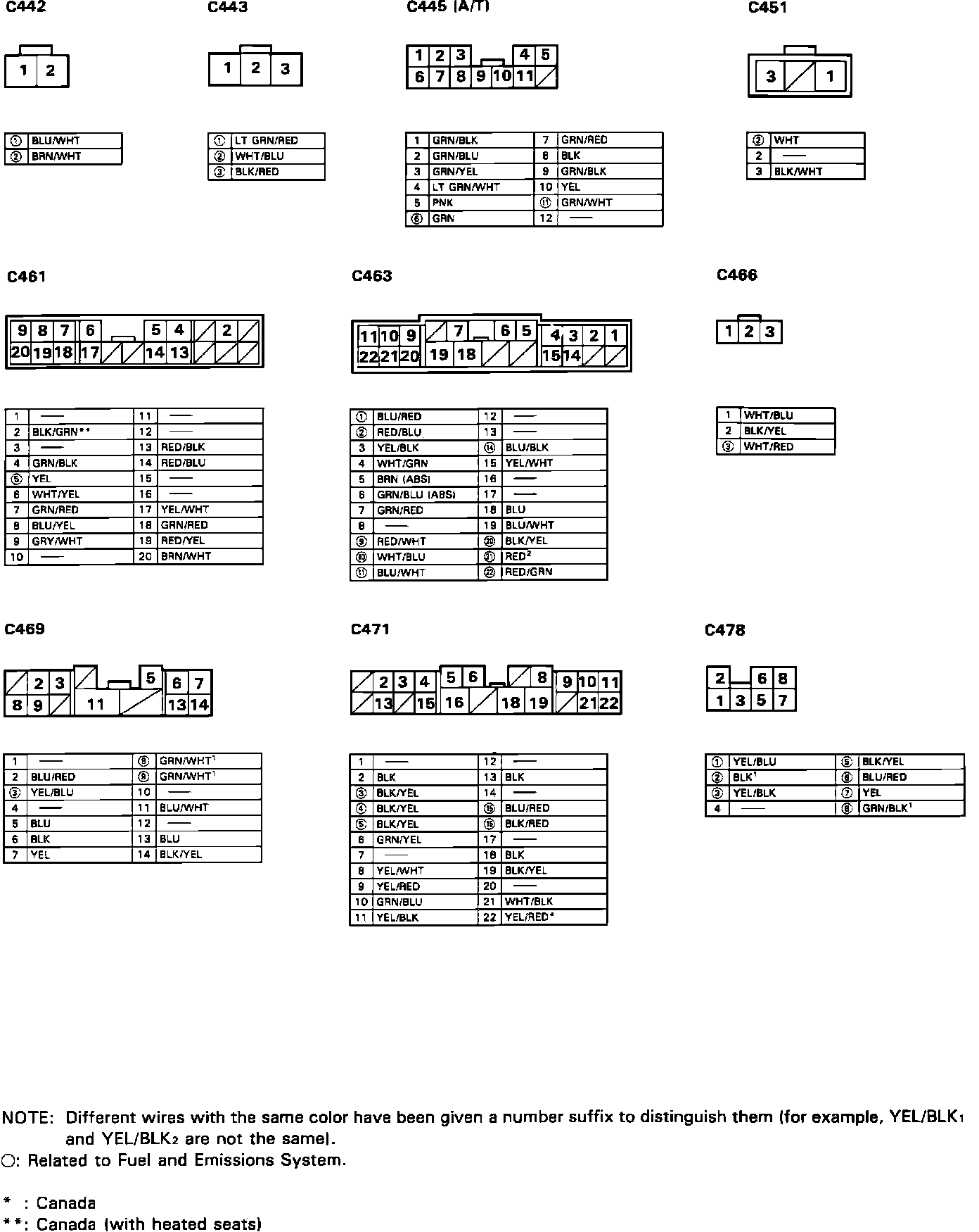 Electrical Connector Identification And Wire Location: