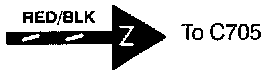 This circuit continues on another image. (The arrow shows direction of current flow) To follow the RED/BLK wire in this example, you would turn to the next image(s) and look for the "Z" arrow.