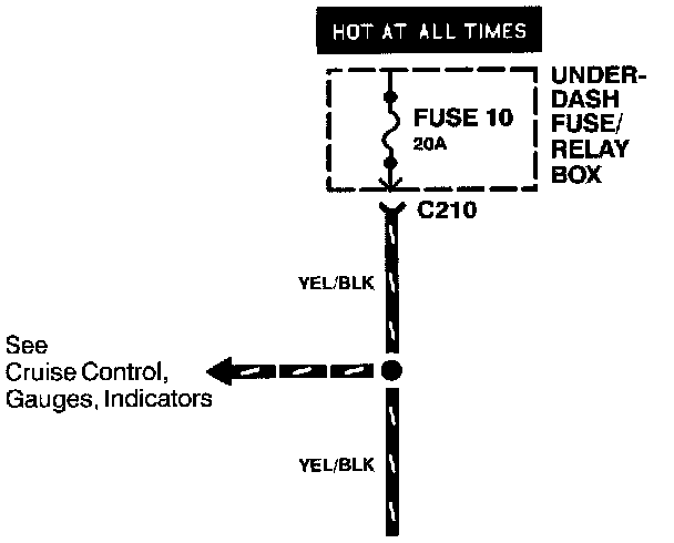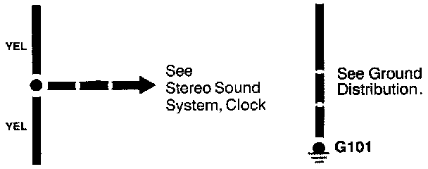 Where separate wires join, only the splice is shown; for details on the additional wiring, refer to the circuits listed.
