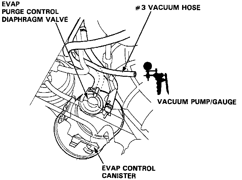 ^ Measure vacuum at #3 vacuum hose at the EVAP Purge Control Diaphragm Valve. Vacuum should read manifold vacuum.
