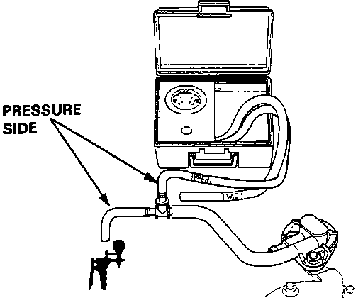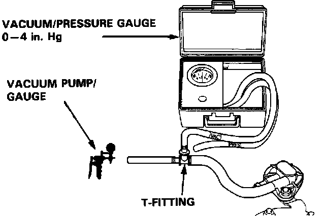 2. Remove vapor line from the fuel tank and connect a vacuum/pressure gauge and pump via a T-fitting.