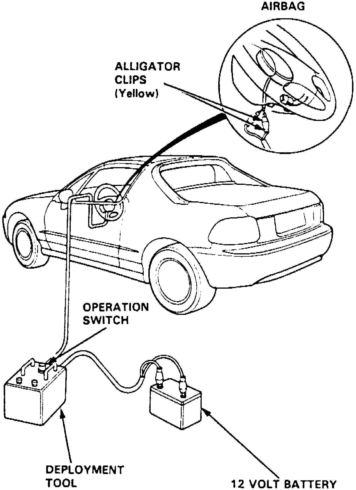 Fig. 37 Air Bag System Deployment Tool Connections (In-Vehicle Deployment). Driver Side Air Bag: