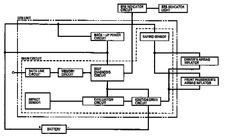 The self-diagnostic function of the SRS system allows it to locate the causes of system problems and to store this information in memory. For easier troubleshooting, this data can be retrieved via the data link circuit.