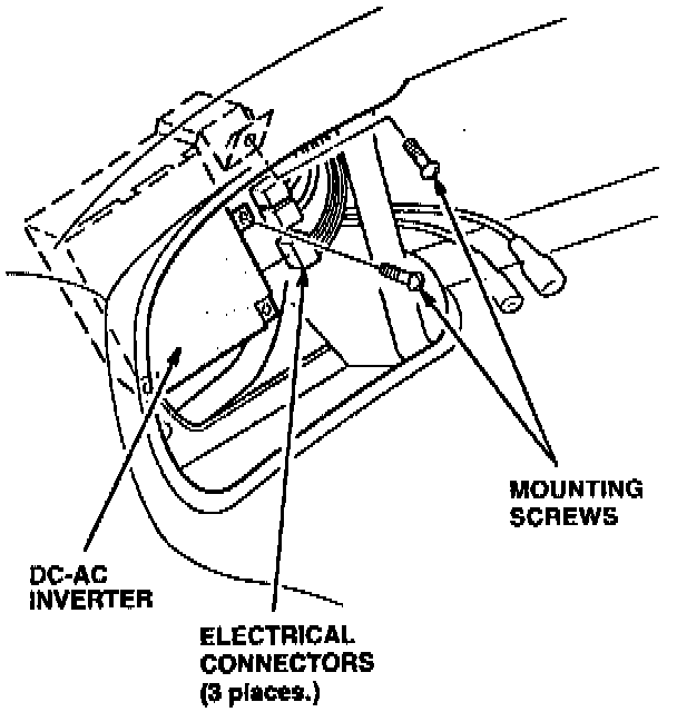 1. Remove the two inverter mounting screws and disconnect the three electrical connectors. Remove the inverter from the dashboard.