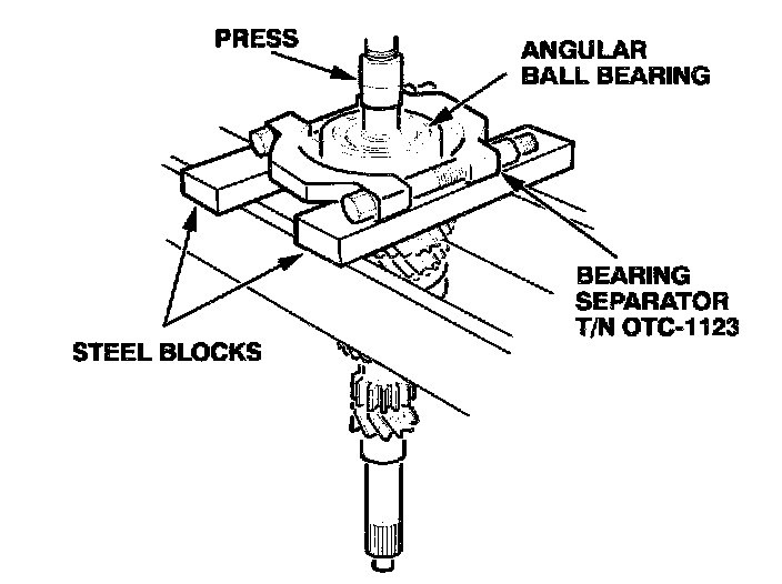 4. Remove the angular ball bearing from the mainshaft using the special tool and a press.