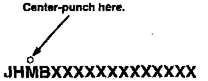 Center punch a completion mark above the third character (M) of the engine compartment VIN.