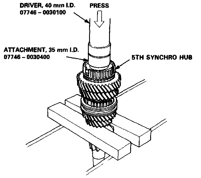 2. Install the 5th synchro hub using the special tools and a press as shown.