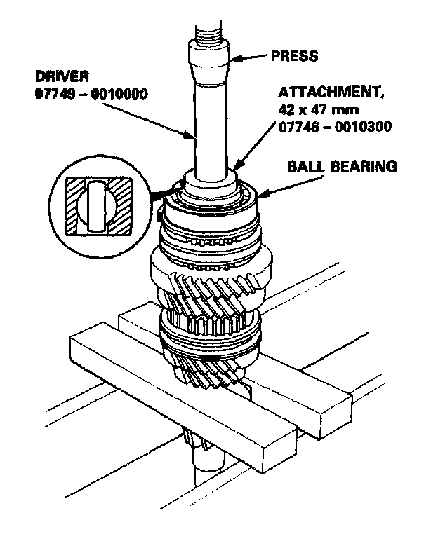 3. Install the ball bearing using the special tools and a press as shown.