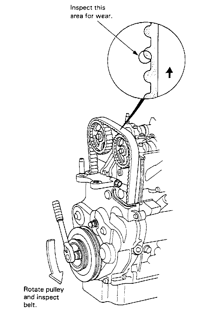7. Inspect the timing belt for cracks and oil soaking.