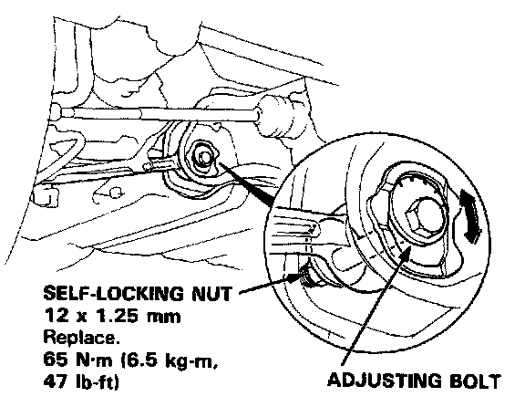 7. Install the new self-locking nut and tighten while holding the adjusting bolt.