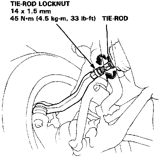 NOTE: After adjusting, recheck the front wheel toe and readjust if necessary. Reposition the tie-rod boot if twisted or displaced.