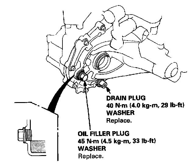 4. Reinstall the drain plug with a new washer, and refill the transmission oil to the proper level.