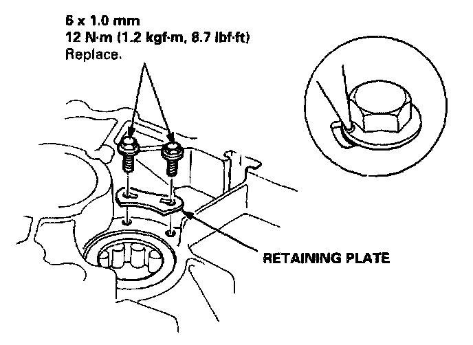 5. Install the retaining plate, and stake the bolt heads into the groove in the retaining plate.