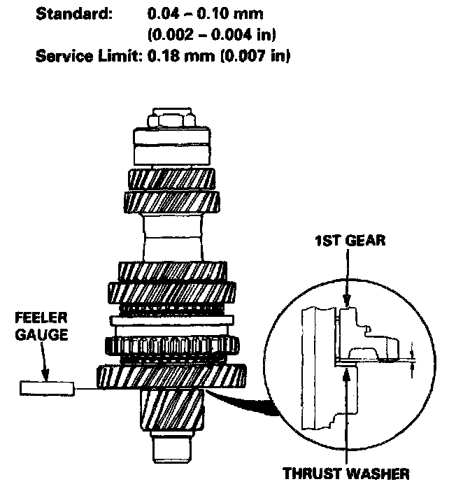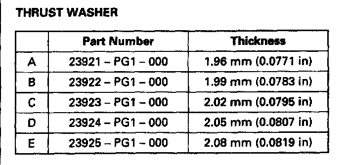 2. If the clearance is more than the service limit, select the appropriate thrust washer for the correct clearance from the chart above, and install it.