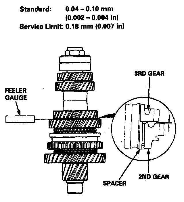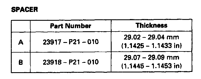 4. If the clearance is more than the service limit, select the appropriate spacer for the correct clearance from the chart below, and install it.