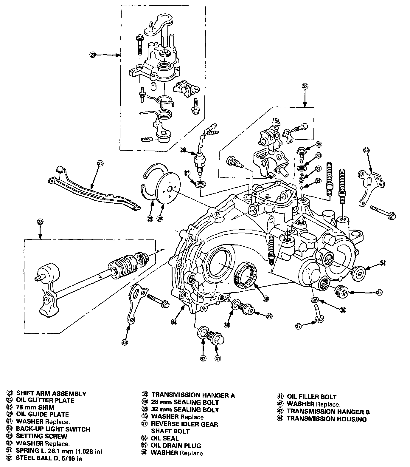- This transmission uses no gaskets between the major housings; use liquid gasket (P/N 08718-0001)