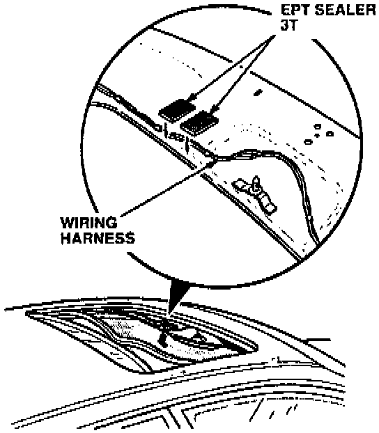 Fasten the wiring harness to the headliner with EPT Sealer 3T (see REQUIRED MATERIALS).