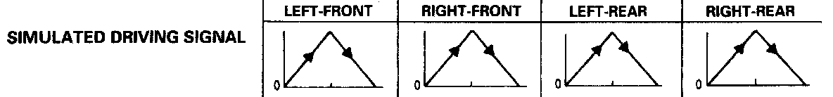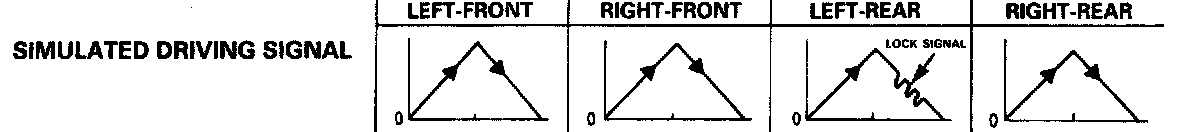 Mode 4: Sends the driving signal of each wheel, then sends the lock signal of the left-front wheel to the ABS control unit to check the system under left-front wheel lock. There should be kickback.