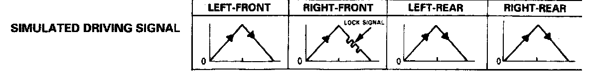 Mode 5: Sends the driving signal of each wheel, then sends the lock signal of the right-front wheel to the ABS control unit to check the system under right-front wheel lock. There should be kickback.