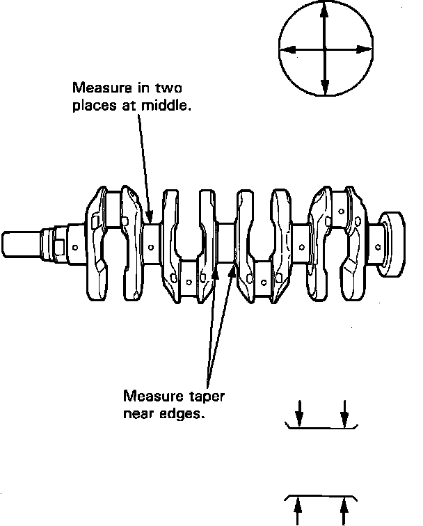 - Measure out-of-round at the middle of each rod and main journal in two places.