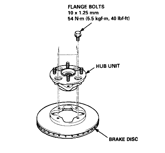 8. Install the hub unit on the brake disc and tighten the flange bolts.