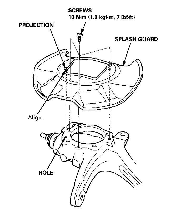 Note: Align the projection in the splash guard with the hole on the knuckle.