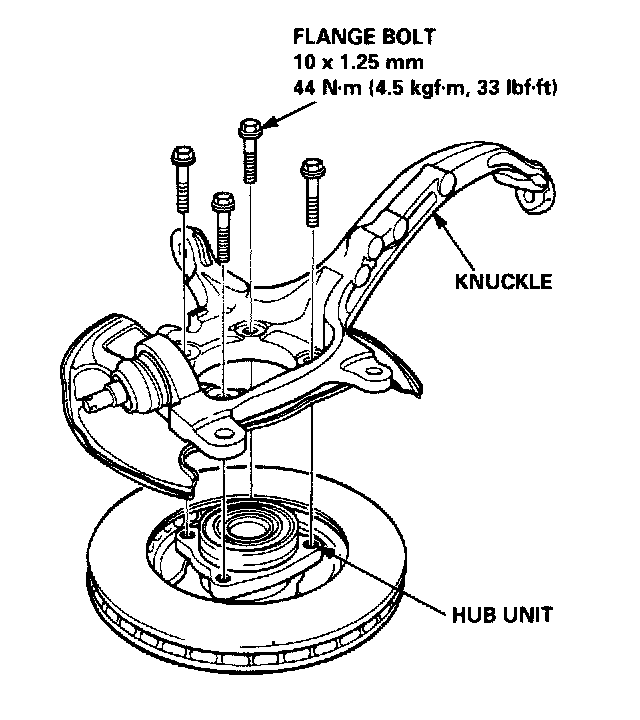10. Install the knuckle on the hub unit and tighten the flange bolts.
