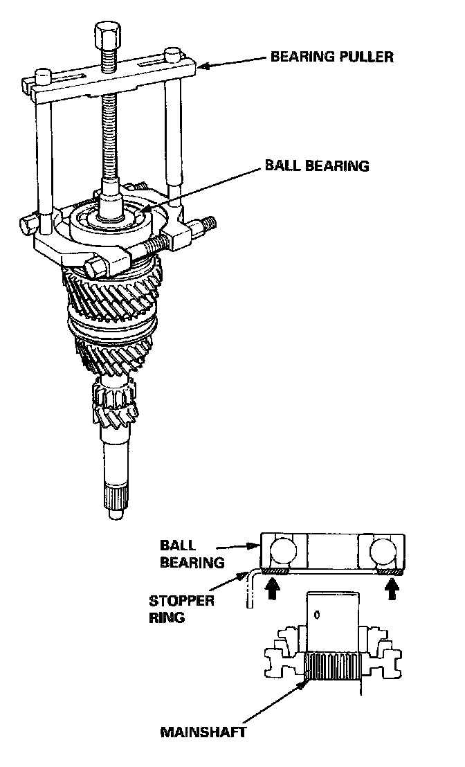 1. Remove the ball bearing using a bearing puller as shown.