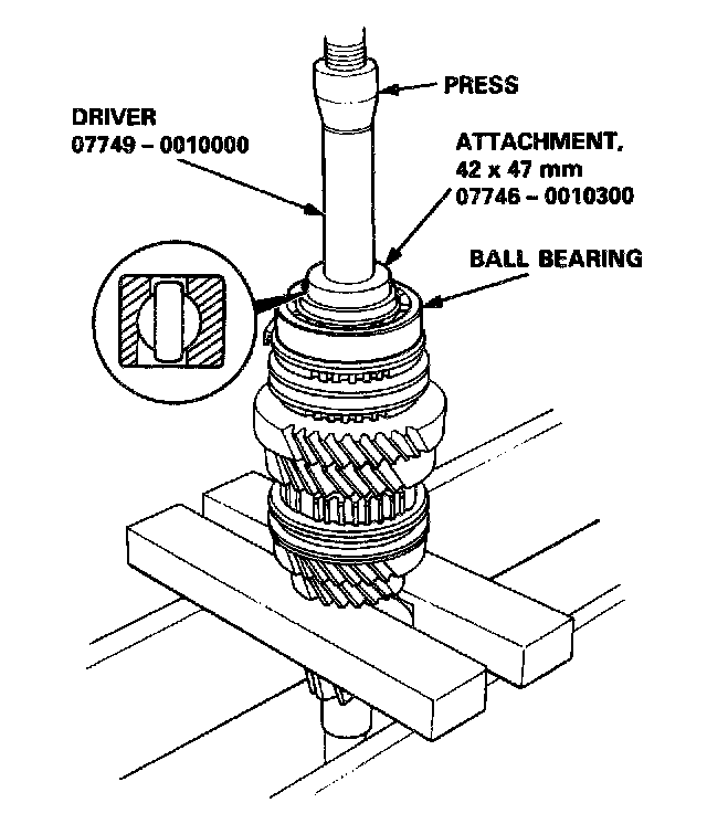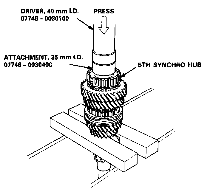 2. Install the 5th synchro hub using the special tools and a press as shown.