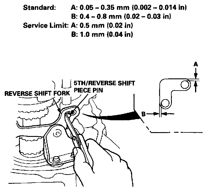 1. Measure the clearances between the reverse shift fork and 5th/reverse shift piece pin.