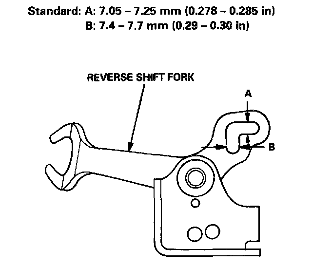 2. If the clearances are more than the service limit, measure the widths of the groove in the reverse shift fork.